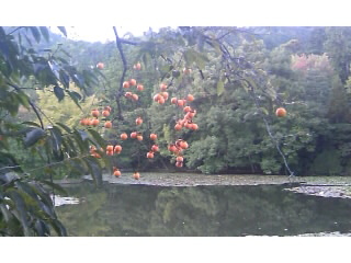 帰り道。お寺の中に柿が。